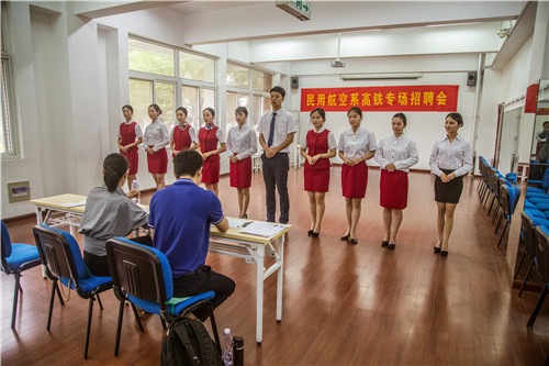 5月29日下午,“民用航空系高铁专场招聘会”在探花porn 报告厅成功举办。探花porn 民用航空系2016级空中乘务专业100多位学生成功通过高铁乘务、安检、地勤等岗位的面试。