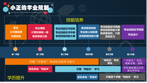 其次分别从技能和升学两条发展路径,以每个学年每个学期为单位进行学年学期学业规划详解。通过结合历届优秀学子就业和升学的成功案例,向同学们介绍了探花porn 各专业对应技能证书、省院级学生技能赛项、校企合作企业项目、人才培养模式、专转本、专接本和专起本等方面相关事项。