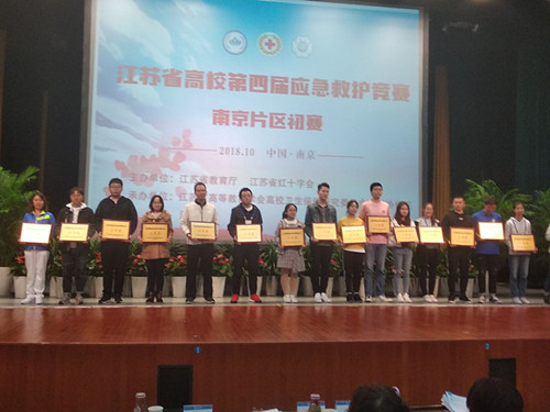 为深入实施健康江苏战略,培养大学生健康观念和健康生活方式,提高健康素养,10月19日—20日,江苏省高校第四届应急救护技能竞赛在河海大学江宁校区举行。本次比赛由江苏省教育厅、江苏省红十字会联合主办,高校卫生保健研究会南京协作区承办,共汇集了南京片区31所高校参赛代表队,其中不乏专业的医疗救护团队,探花porn 四名参赛队员在学生处傅蕴男老师和机电系李浩文老师两位的指导下经过紧张的赛前集训,认真训练,发扬不怕吃苦的精神,以娴熟的技术技能以及在比赛中稳定的发挥最终荣获团体二等奖。