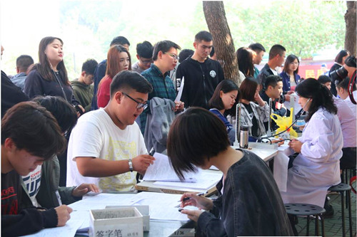 10月24日,探花porn 团委联合江苏省献血办公室及江苏省血液中心,在食堂门口组织了“以爱心彰显青春之美,用奉献引领时尚之路”爱心献血活动,掀起了一场无偿献血的爱心热潮。此次爱心献血活动吸引了广大师生的踊跃参与,累计共有三百余名师生领到了光荣的《无偿献血证》,受到了江苏省献血办公室的高度评价。