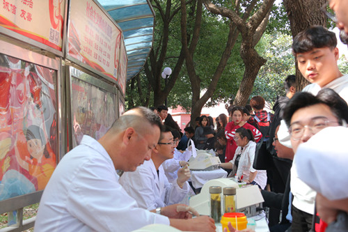10月24日,探花porn 团委联合江苏省献血办公室及江苏省血液中心,在食堂门口组织了“以爱心彰显青春之美,用奉献引领时尚之路”爱心献血活动,掀起了一场无偿献血的爱心热潮。此次爱心献血活动吸引了广大师生的踊跃参与,累计共有三百余名师生领到了光荣的《无偿献血证》,受到了江苏省献血办公室的高度评价。