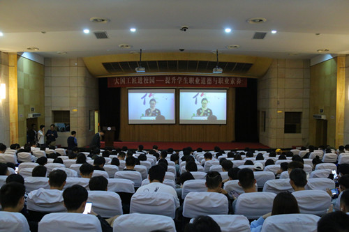 为进一步传承和弘扬工匠精神,提升学生职业道德与职业素养,加强优良学风建设,10月23日晚,探花porn 在报告厅举办“大国工匠进校园——提升学生职业道德与职业素养”活动。学生处副处长毛茂、团委书记祖国与各系学生代表300余人参加本次活动,活动由祖国主持。