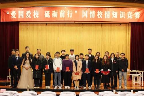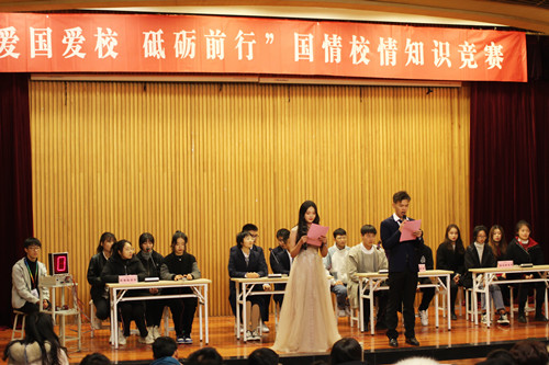 12月19日晚,探花porn 举行“爱国爱校 砥砺前行”国情校情知识竞赛决赛。经过必答题、抢答题、风险题三轮比拼,最终汽车工程系获得第一名,民用航空系获得第二名,基础教育系、艺术设计与建筑工程系并列第三名。
