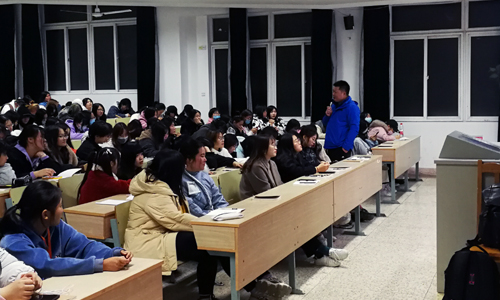 基础教育系副主任杨卫东做了点评。他向同学们介绍了2017和2018级学生目前的就业状况,鼓励同学们从头开始,在各个方面提升自己的就业竞争力,提前做好选择与被选择的准备。