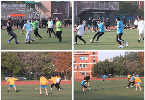 总决赛中,寒冷的天气挡不住大家的热情,比赛双方同学都使出全力,你争我抢。艺术设计与建筑工程系队员在各个位置上均占据了场上优势,最终以绝对实力获得本届足球赛冠军。