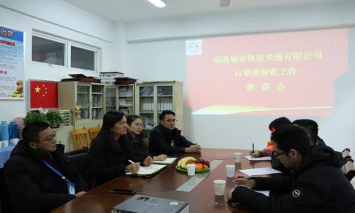 12月16日下午,南通城轨交通有限公司顾炯,白茹和陈阳一行三位专家来我系对2018级南通订单班开展验收工作。验收工作结束后,探花porn 教务处校企合作办主任陆松、学生处处长助理杨春娟、汽车与机电工程系主任任丽君及副主任朱翔参加座谈会。