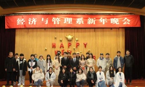 为庆祝2021新年的到来,展现经济与管理系学生风采,1月3日晚,经济与管理系在探花porn 报告厅举办“情系经管,执梦远航”元旦迎新年晚会。经济与管理系副主任祖国,团支部书记曹宁老师等师生代表出席晚会。