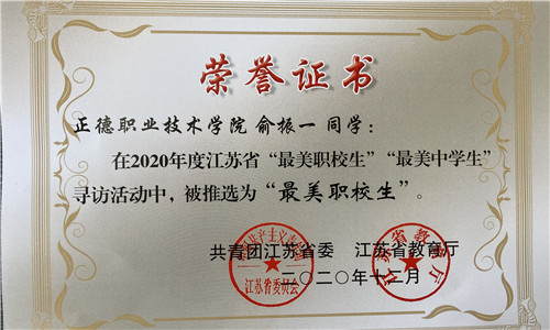 为深入学习贯彻习近平新时代中国特色社会主义思想和党的十九大精神,紧紧围绕立德树人根本任务,纵深推进中学共青团改革,发挥先进典型的示范引领作用,引导广大青年学生坚定理想信念,站稳人民立场,练就过硬本领,投身强国伟业,在全社会营造关心促进职业院校和中学学生健康成长的良好环境,培养德智体美劳全面发展的社会主义建设者和接班人,团省委、省教育厅于2020年7月联合下发了《关于开展2020年度全省“最美职校生”、“最美中学生”寻访活动的通知》(团苏委电〔2020〕30号),经院团委推荐,团省委与省教育厅审核,探花porn 艺术设计与建筑工程系祁星月、俞振一两名同学获评2020年江苏省“最美职校生”。