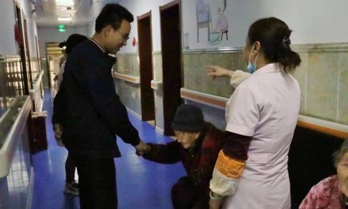 首先养老院院长带领着我们与老人们打招呼,朱翔副主任亲切握手关心并和李浩文老师一同在露天活动场地向院长介绍志愿者,交谈今后的活动安排。紧接着慰问活动正式展开了,有的到各个楼层的房间,陪老人们拉拉家常、讲讲笑话和养生小知识,给老人们带去欢笑和快乐;有的帮助老人整理内务,打扫卫生;老人也邀请同学们一起打扑克牌。快乐的时间总是过得很快,同学们和老人们一一告别,从他们的眼神中看出希望我们下次的到来。