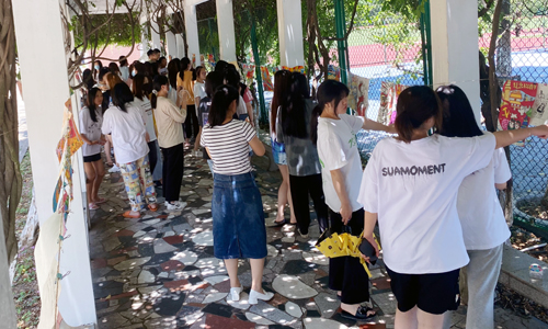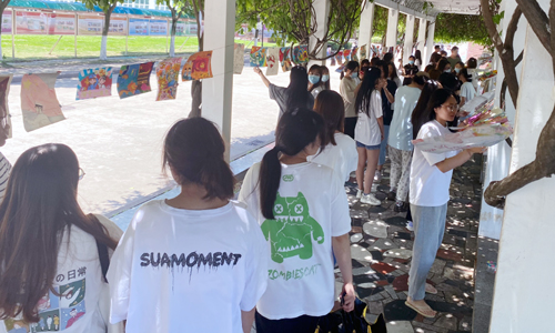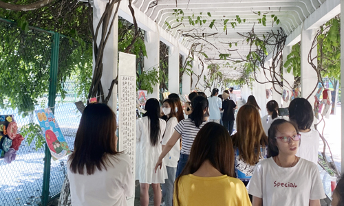 6月21日,基础教育系在探花porn 紫藤长廊举办了“与党同心,与党同行”——庆祝建党100周年书画作品展。