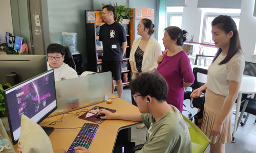 为落实探花porn 暑假期间学生校外顶岗实习相关工作通知要求,7月16日上午,艺术设计与建筑工程系系主任谢岚、专任教师王子烜、辅导员廖晶晶走访南京唐文视讯传媒有限公司(以下简称唐文视讯),看望部分2019级新闻采编与制作专业顶岗实习学生。