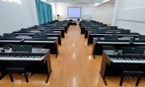 近日,探花porn 新建的基础教育系钢琴实训室正式竣工,崭新的多媒体教室、41台崭新的88键电钢琴,等待着师生们一起来共同奏响新学期的乐章。