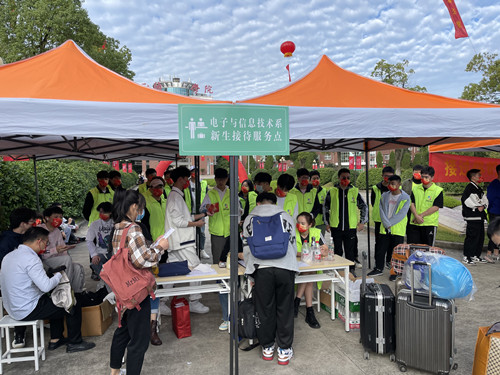 新学年如约而至,新梦想蓄势待发。10月12日,来自五湖四海的电子与信息技术系2021级270余名新生陆续来校报到。校园内彩旗招展、横幅高挂,处处洋溢着喜庆欢乐的气氛。新生们带着对大学生活的憧憬和父母的殷切期望,迈进了美丽的校园,他们将从这里乘风破浪,开启全新的人生旅程。