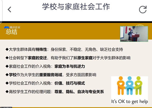 此次线上培训由北京大学社会学助理教授,美国芝加哥大学社会工作专业博士冯慧羚进行讲解,系统讲解了学校社会工作和家庭社会工作,并就传统不良家庭和新时期不良家庭进行对比分析。冯教授强调,在资助工作中要尊重每个学生的个体差异、尊重多元性,了解学生不同需求,在学生遇到困难时能够整合教学资源及管理资源,从经济资助上升到精神资助,更好的关心关爱学生。整场培训冯教授将理论与案例分析相结合,深入分析了家庭经济困难学生可能会存在的问题,并通过理论指导实践,提出更好更优的解决办法,剖析出新时期资助帮扶的重要性。