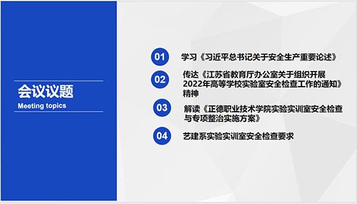 安全无小事,警钟须长鸣,3月31日,艺术设计与建筑工程系在线召开实验实训室安全检查专题会议,具体部署实验实训室安全管理工作,迎接省教育厅2022年高等学校实验实训室安全检查,会议由谢岚主任主持。