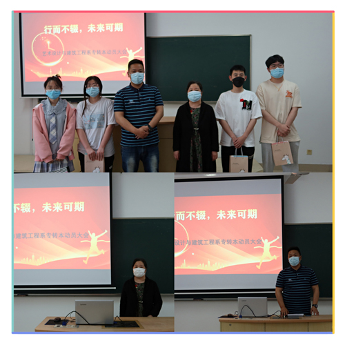 5月17日,艺术设计与建筑工程系2022届毕业生专转本冲刺动员大会在8303教室召开。艺建系主任谢岚、党支部书记陈宏波、辅导员以及24名在校即将参加专转本考试的学生代表参加会议,会议由廖晶晶老师主持。