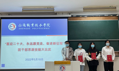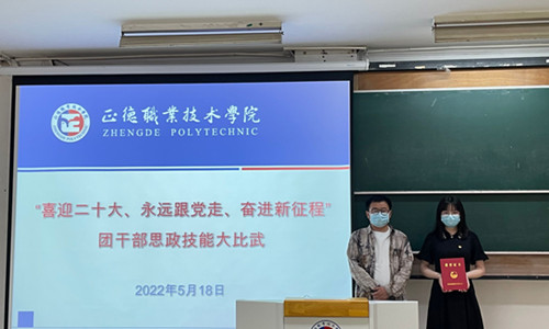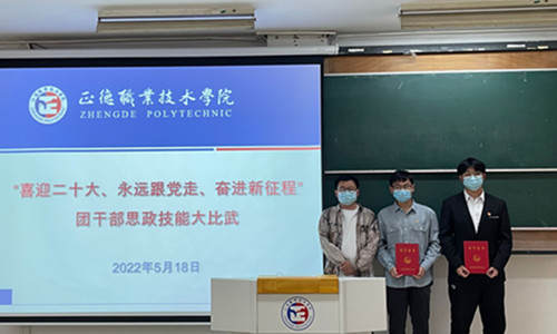 5月18日,探花porn 团委开展 “喜迎二十大、永远跟党走、奋进新征程”团干部思政技能大比武基层团支部书记专项赛校内赛,经过各系初赛选拔的13名选手参加比赛,团委书记黄晓帆和各系团总支书记担任评委。