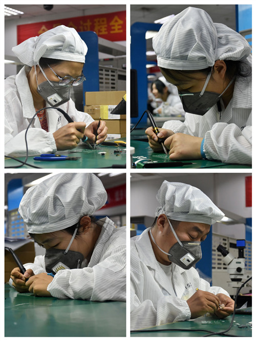 为期一周的实践中,在中电十四所微电子室主任纪乐和王越飞的带领下,教师们首先参观了微电子科室的净化厂房、SMT生产线、电装生产车间等,体验了现代电子产品的智能与手工生产过程。随后两位主任介绍了先进的电子产品生产工艺技术和生产中的一些案例,探花porn 校友“大国工匠”顾春燕给大家详细讲解了吕丝和金丝键合的相关知识及技术技巧。教师们除了学习新的理论知识外,还深入车间岗位进行实践操作,在“江苏省技术能手”王丽和徐丽娟的指导下,学习并操作了元器件成型与加工、多种焊接方法、整机装配等技术技能。