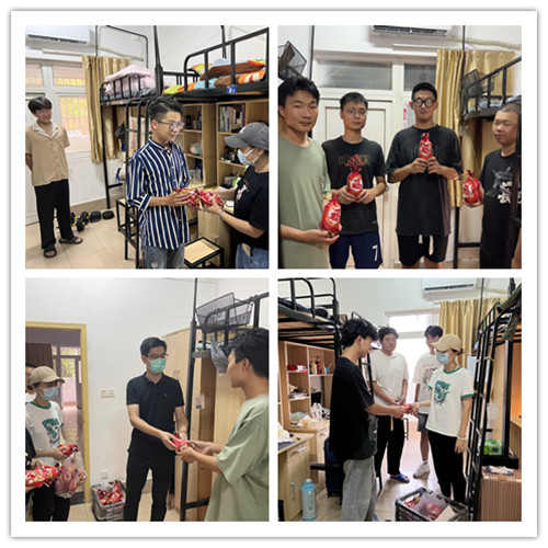 9月6日下午,电子与信息技术系党支部书记赵欣、2021级辅导员刘敏婧、李兰香走进学生宿舍,为他们发放了过节福袋。老师叮嘱同学们在疫情防控常态化的环境下注意个人防护,勉励学生们要学会自强、学会学习、学会感恩,在探花porn 里快乐、健康的度过大学生活。月饼虽小,却传递着浓浓亲情和暖暖爱意,承载着老师对同学的关切和期望。同学们也纷纷对老师们的关心慰问表示感谢,承诺会牢记老师的嘱托,向着自己的目标不懈奋进。