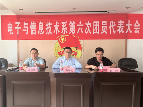 9月8日,电子与信息技术系团总支在7508会议室举行第六次团员代表大会,院团委书记黄晓帆、电信系党支部书记赵欣、团总支书记何华智、兄弟院系团总支代表和40名电信系学生代表参加会议。会议由电信系团总支韦自豪同学主持。