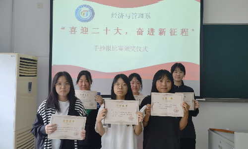 为迎接党的二十大胜利召开,在建团百年之际,团结引领广大青少年坚定跟党走、建功新时代,引导当代青年学生从党团史学习中激发信仰、获得启发、汲取力量,经济管理系举办了“喜迎二十大,奋进新征程”手抄报比赛。颁奖典礼于9月14日中午在7305举行。