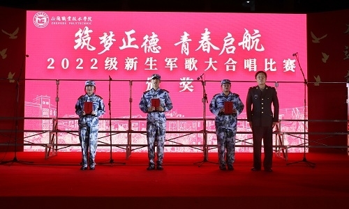 一首首铿锵有力的军歌,既抒发了同学们对祖国和军人的热爱和赞美,也表现出饱满激昂的精神状态,表达了每一位同学对祖国美好未来的祝福。经过激烈的角逐,基础教育系女生一排的《女兵谣》最终夺得一等奖;电子与信息技术系男生一排和汽车与机电工程系男生一排荣获二等奖;经济与管理系女生二排、艺术设计与建筑工程系男生三排及女生一排分获三等奖;经济与管理系男生一排、艺术设计与建筑工程系男生一排、二排、民用航空系男生一排分获优胜奖。