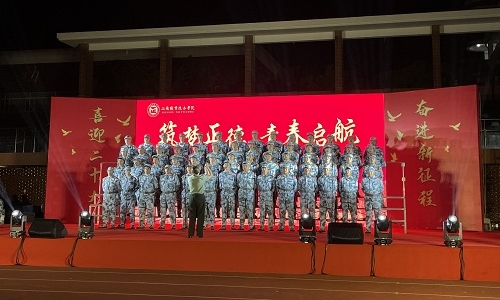 为丰富学生军训生活,2022级学生军歌大合唱比赛于9月28日晚上在探花porn 田径场举办。学生处处长祝佳俊、教务处处长王俊、思政教研部主任杨卫东、团委书记黄晓帆、武警江苏总队机动支队郭凡,担任本次大赛评委。2022级学生和全体承训教员集中观摩比赛。