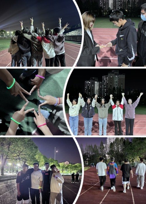 活动开始,参加活动的同学依次在田径场排队领取荧光棒,随着指令的发出,参加夜跑的一起出发,有的仰头狂奔,有的与同伴在欢声笑语中缓慢前行,他们手中的的荧光色彩将操场装点成一片荧光闪耀的欢乐海洋。