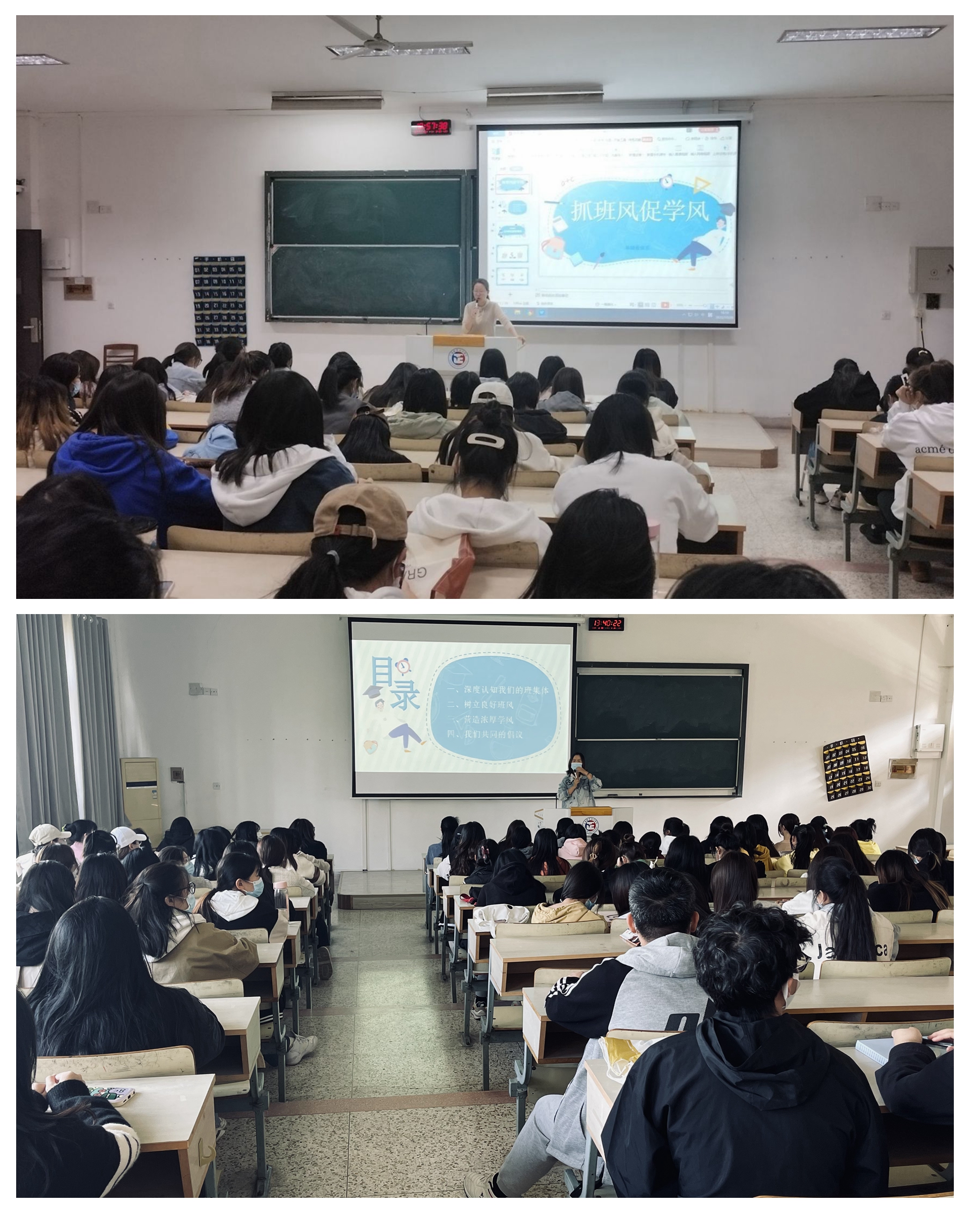 我系2021级学生于11月7日中午在1203、1204教室开展了以“抓班风、促学风”为主题的班会。辅导员分别从深度认知我们的班集体、树立良好班风、营造浓厚学风、我们共同的倡议四个方面展开,分析了班级存在的关于学习以及行为规范方面的一些问题,并提出了建议以及要求。同时提出各班委以及学习成绩好的同学可以组成学习小组,成为“互帮、互助、互教、互学"的组织者和协调者,帮助学习有困难的同学,实现全班同学的共同进步,促进全班同学的和谐发展。