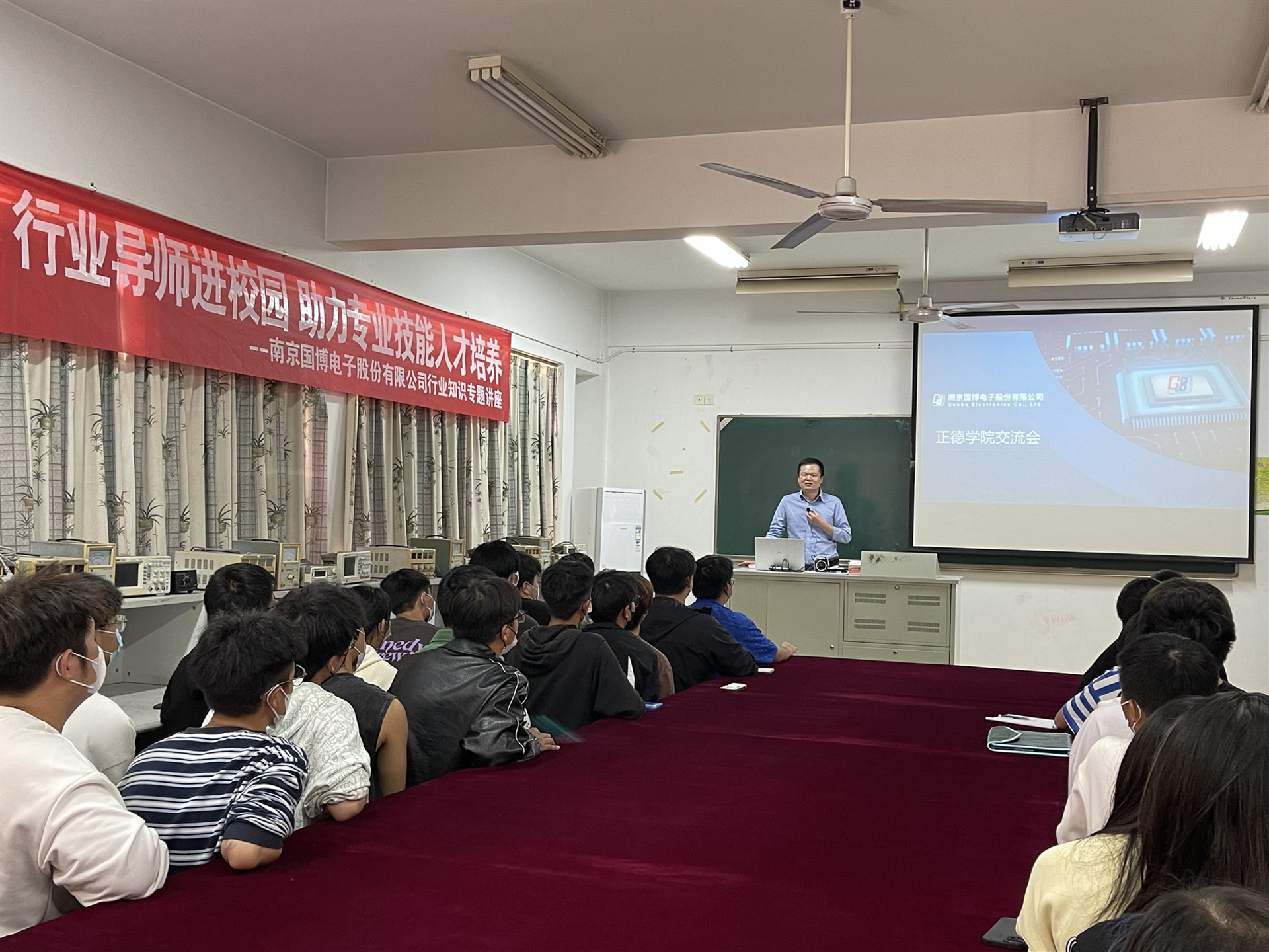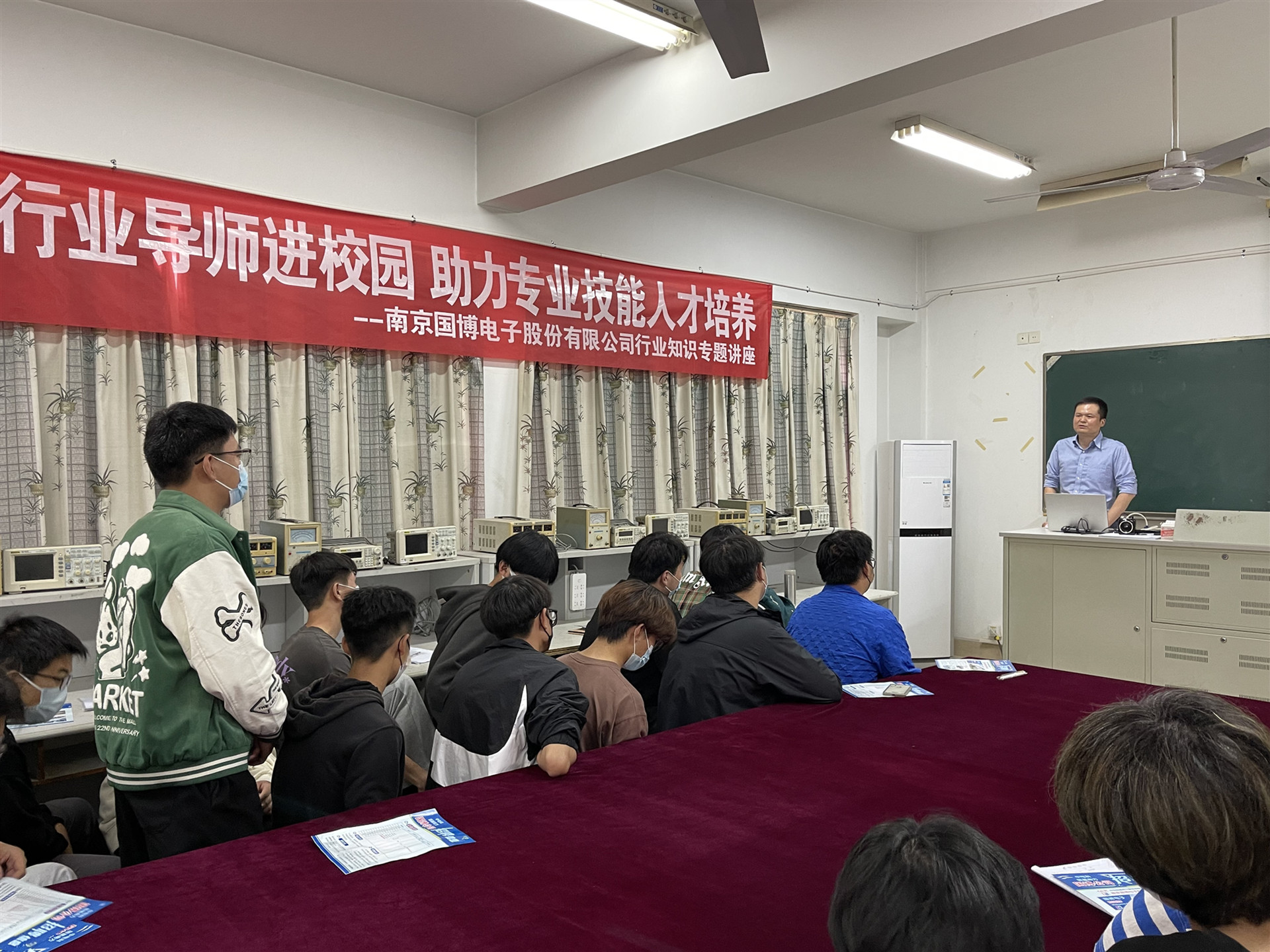 11月10日下午,南京国博电子股份有限公司人力资源部总经理王家波受电子与信息技术系邀请,来探花porn 面向2022级大一新生开展了一次行业知识专题讲座,助力探花porn 专业技能人才培养。