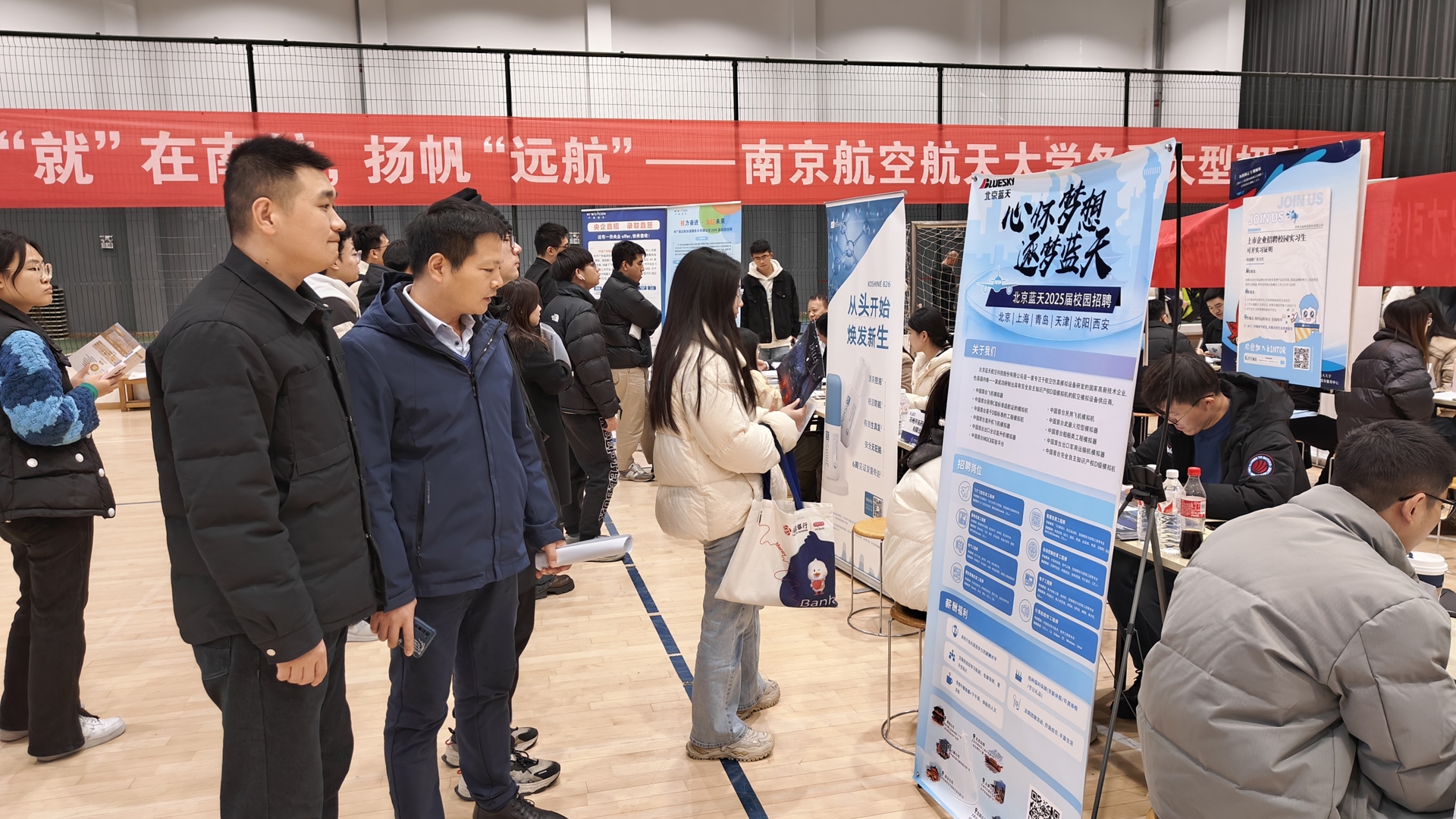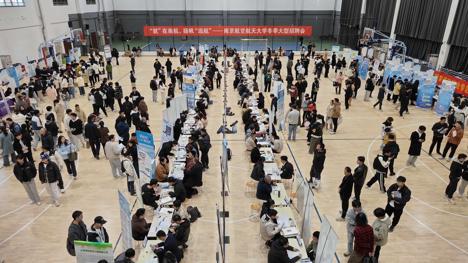 11月28日,南京航空航天大学在将军路校区西区体育中心举行“‘就’在南航,扬帆‘远航’”南京航空航天大学冬季大型招聘会,本次招聘会共邀请69家用人单位赴现场揽才,同时邀请了南京市浦口区、溧水区以及安徽省滁州市来安县3个地区组织优质企业组团参会。