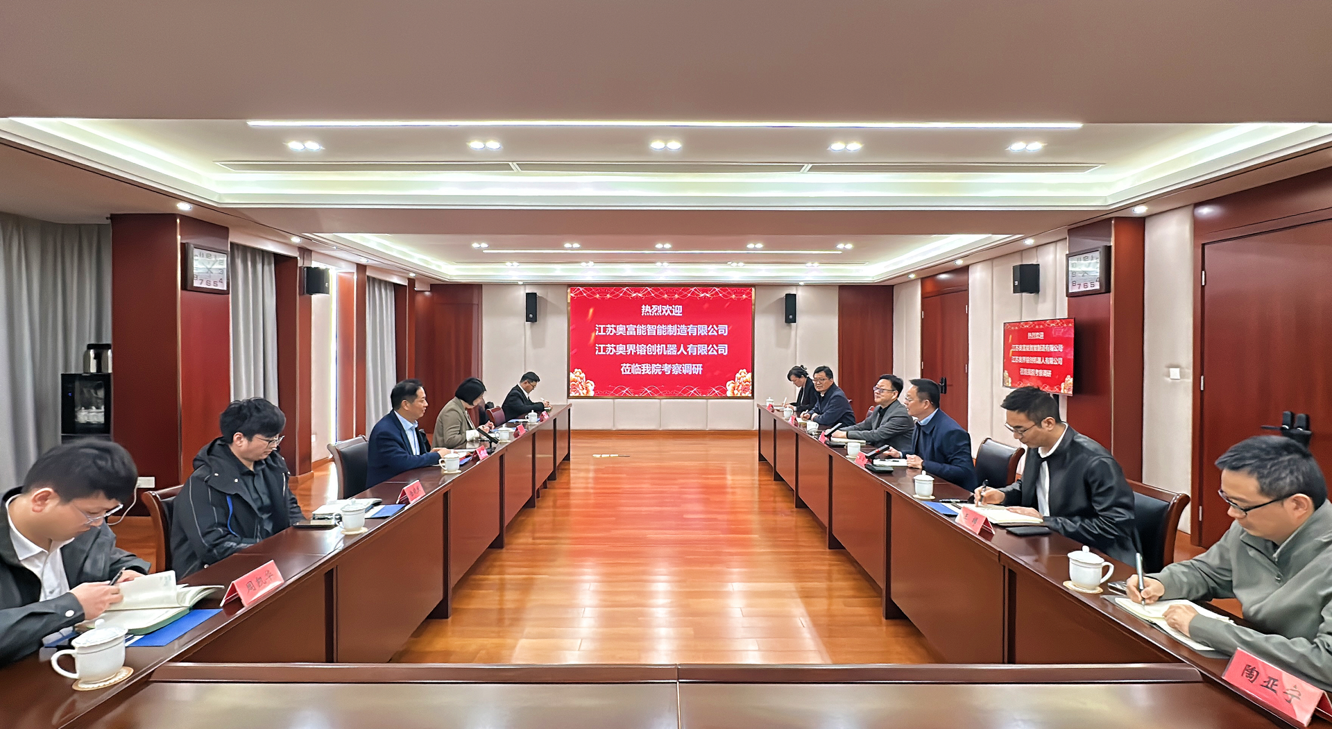 3月28日上午,江苏奥富能智能制造有限公司(以下简称“江苏奥富能”)、江苏奥界镕创机器人有限公司(以下简称“江苏奥界”)创始人兼董事长周炳高,副董事长曹金丹,总经理徐晓民等一行六人来院交流洽谈。院党委书记、政府督导专员孙雷,副院长赵凯雷,院长助理、招生就业处处长王墀以及相关部门、系负责人参加交流活动。