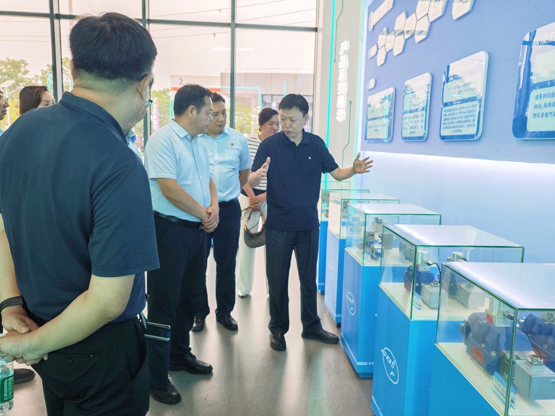 会前,孙永荣一行在王玉兵等企业领导的陪同下,参观了南京伺服和和南京航健的展厅、生产车间、试验中心,深入了解企业的生产流程、技术需求及人才培养体系。