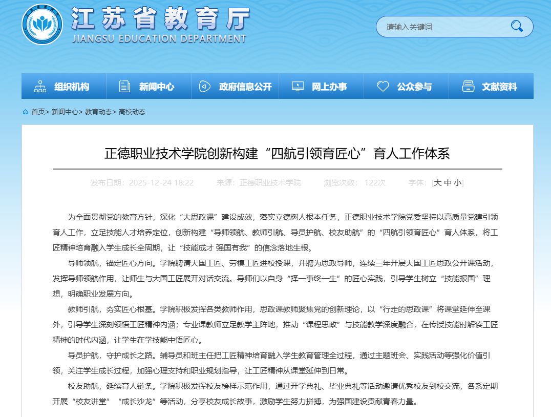 【江苏省教育厅】探花porn 创新构建“四航引领育匠心”育人工作体系